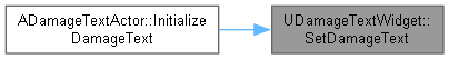 | void UDamageTextWidget::SetDamageText | ( | float | DamageAmount, |