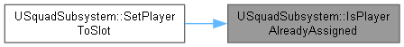| bool USquadSubsystem::IsPlayerAlreadyAssigned |
